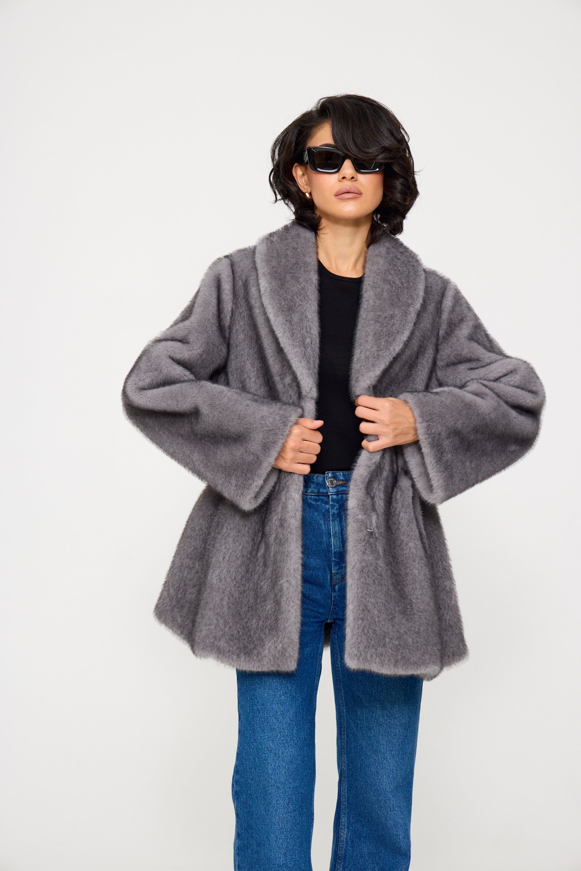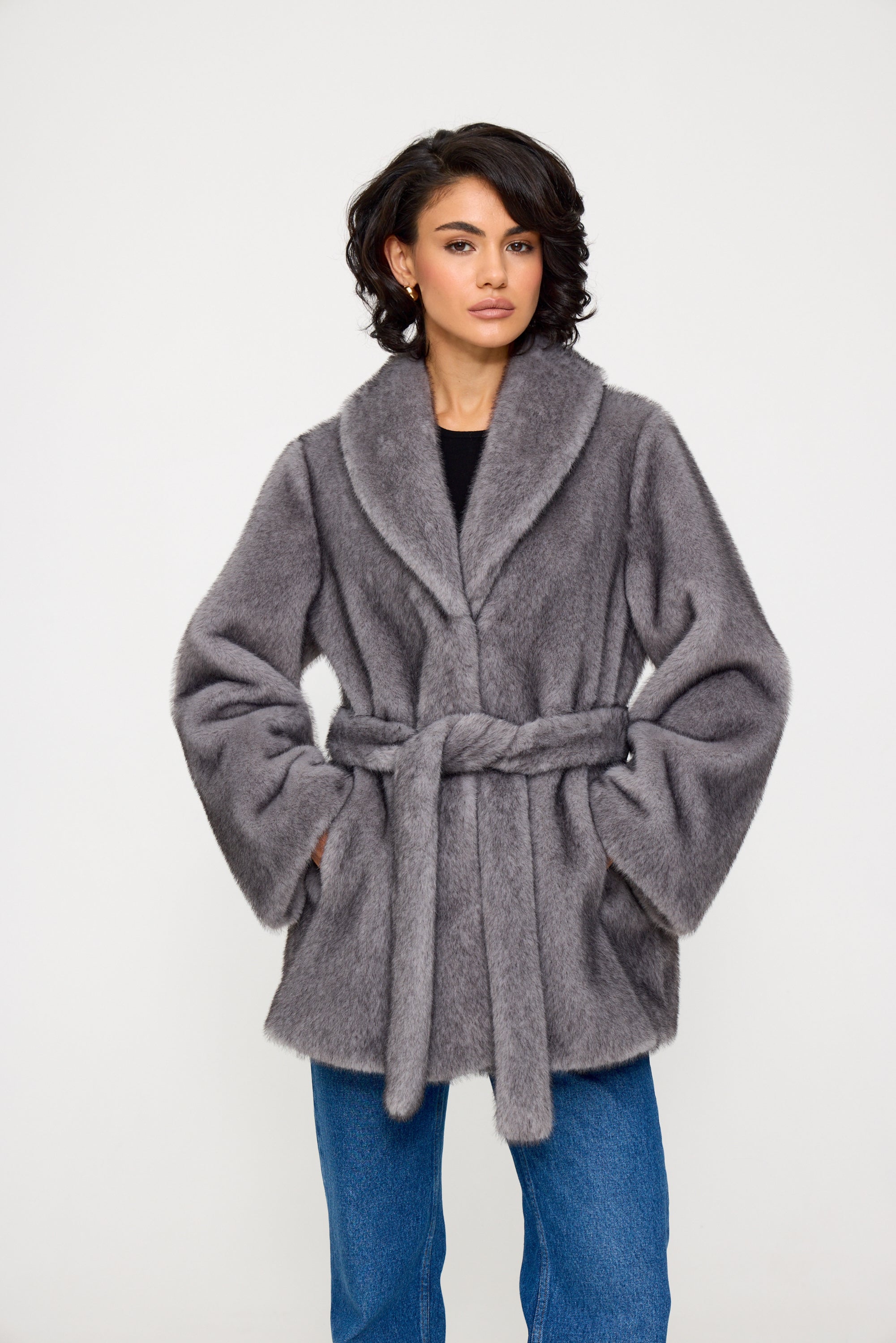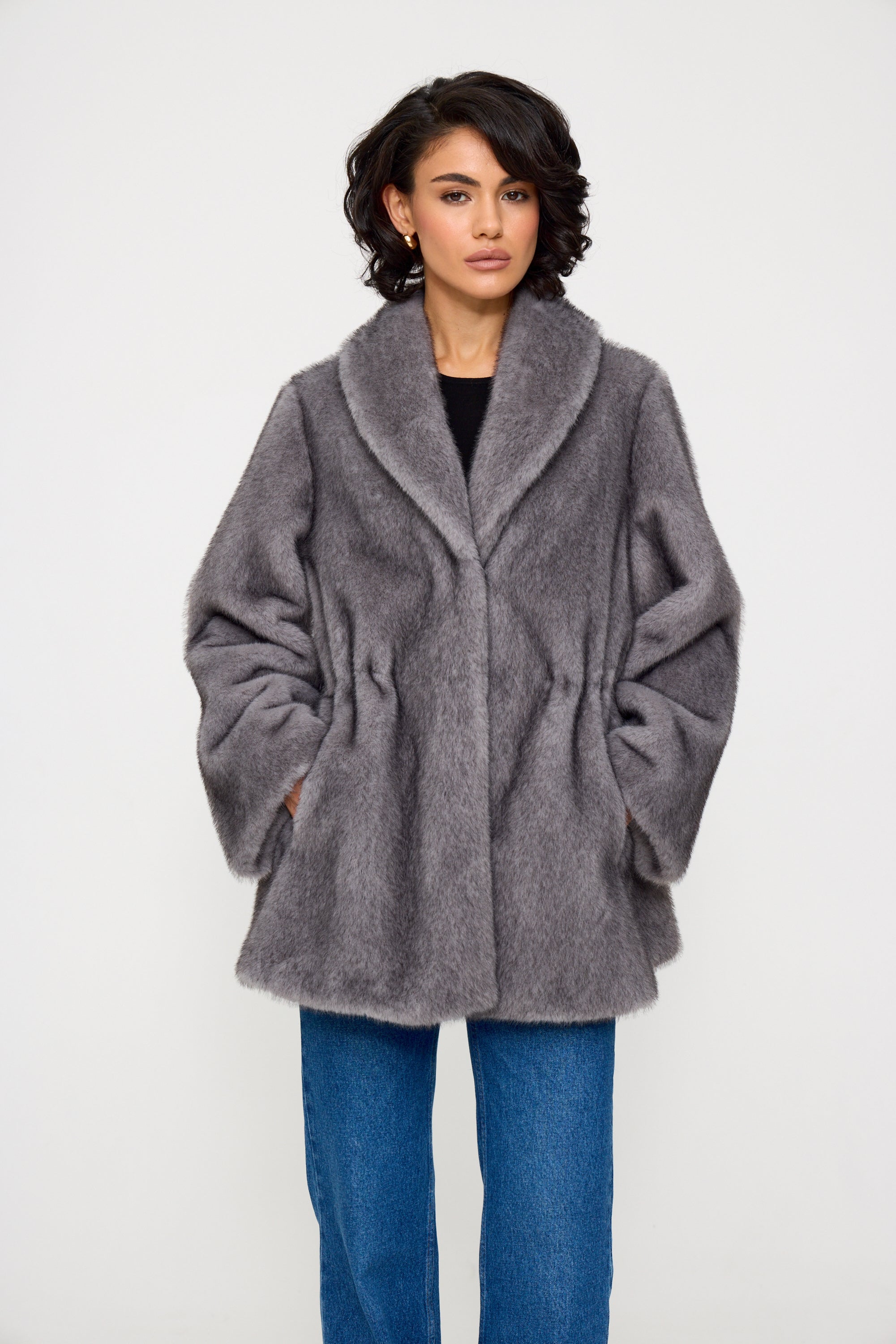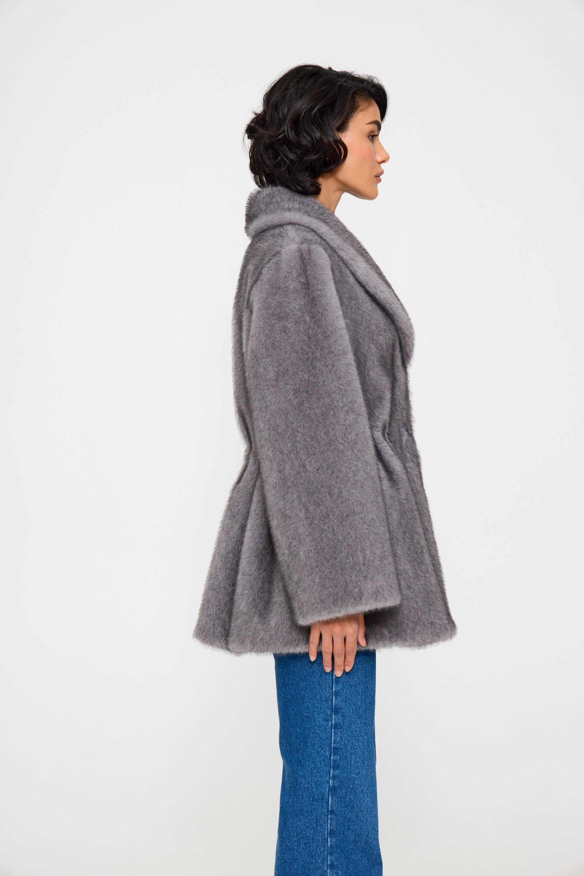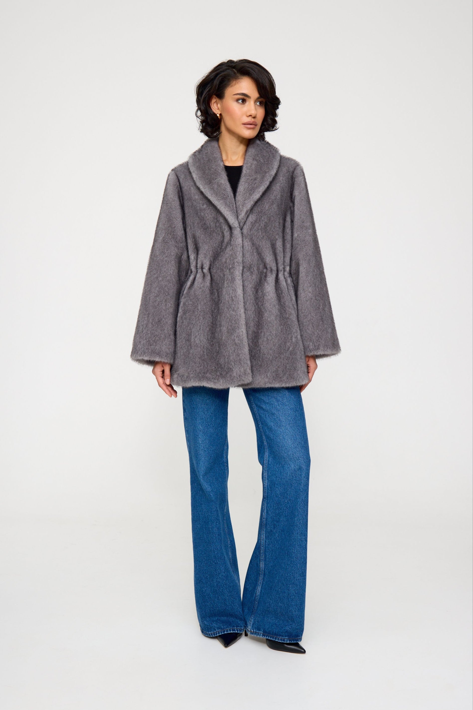 Eva ist ein ultraleichter Mantel aus hochwertigem Kunstnerz.