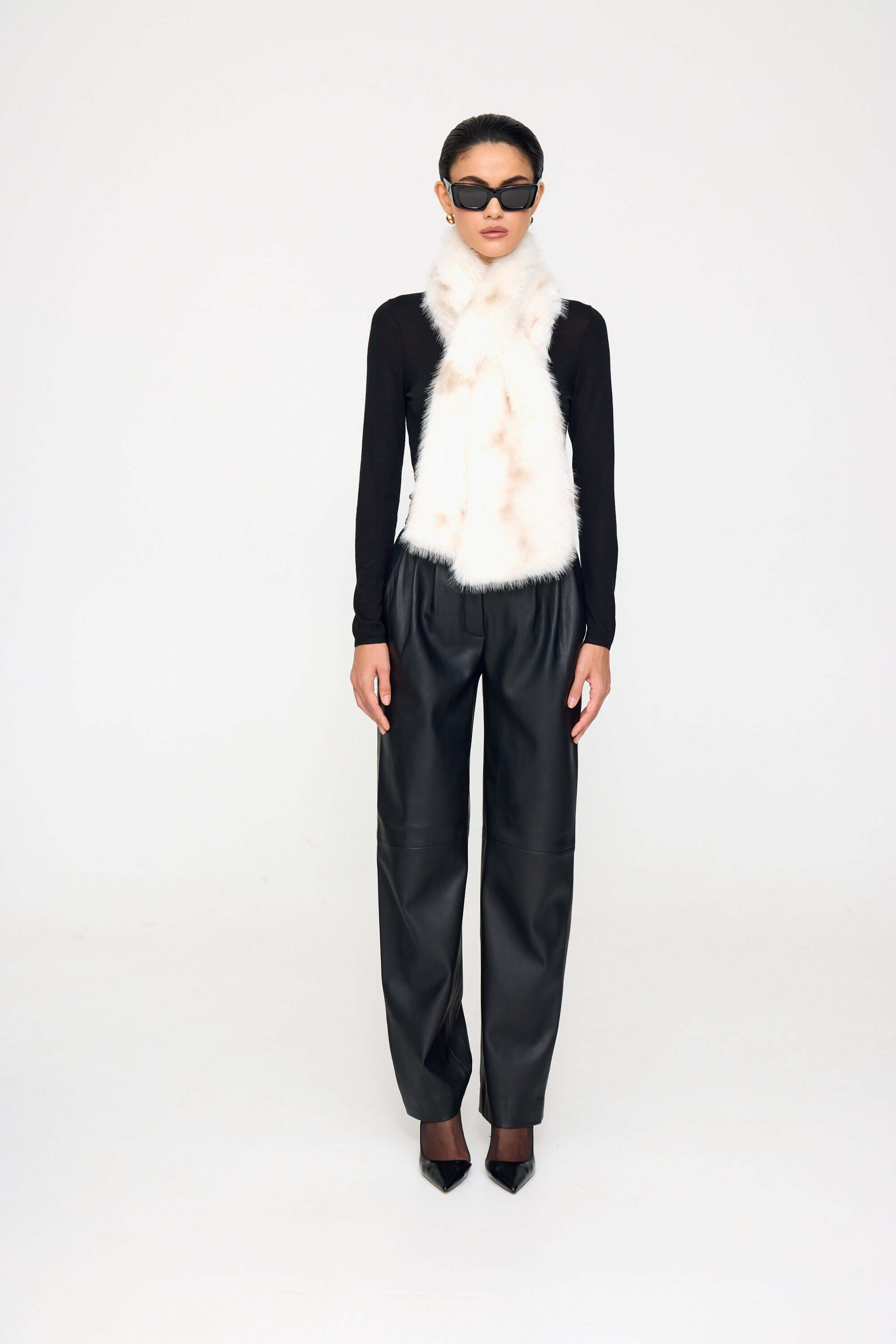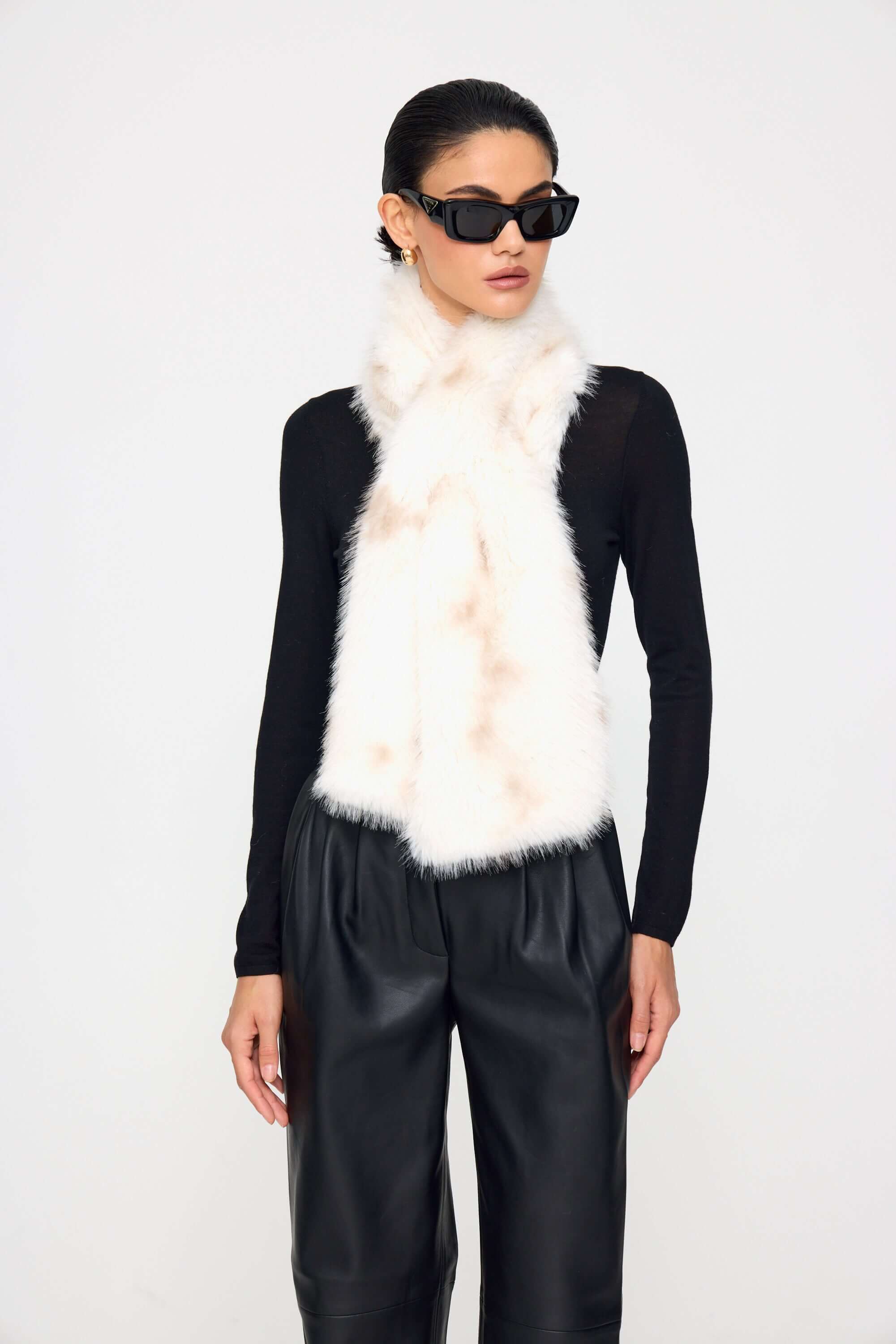 Langer, hellbeiger Schal mit Aufdruck aus hochwertigem Schneehasenfell mit Schlitz am Schalende. Doppelseitig.
