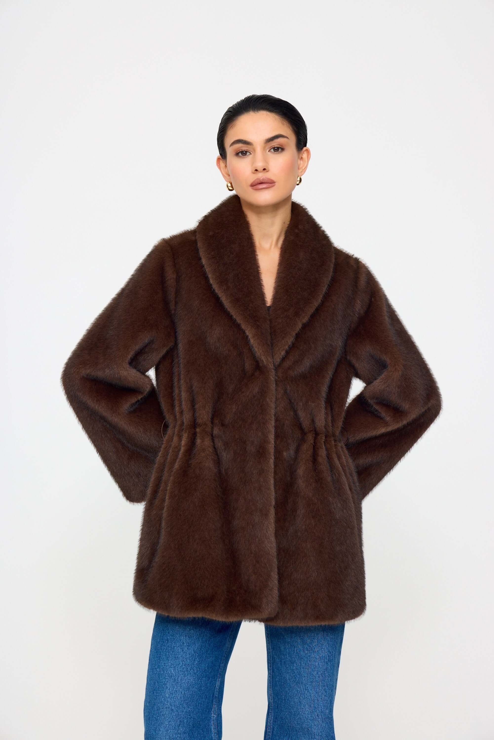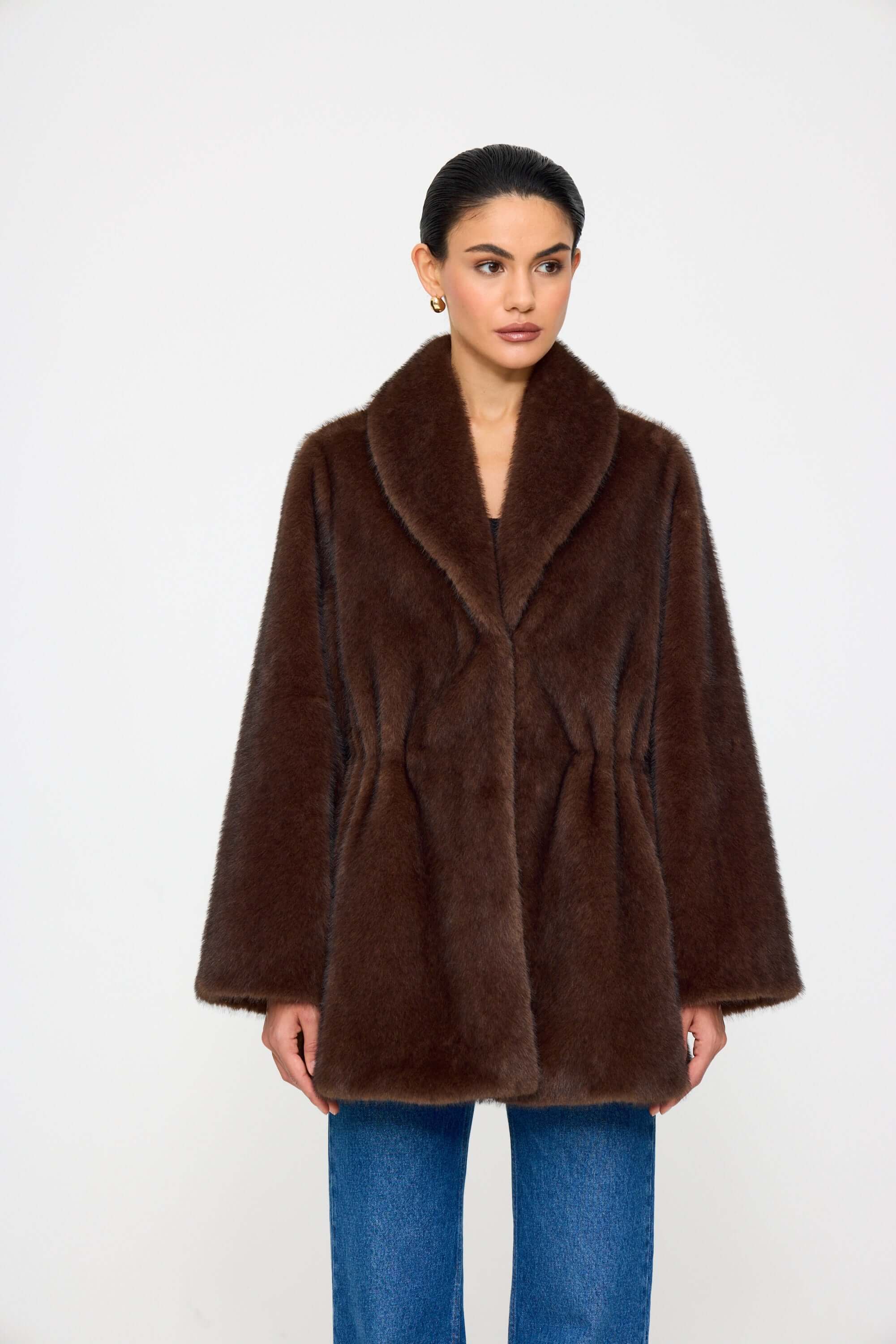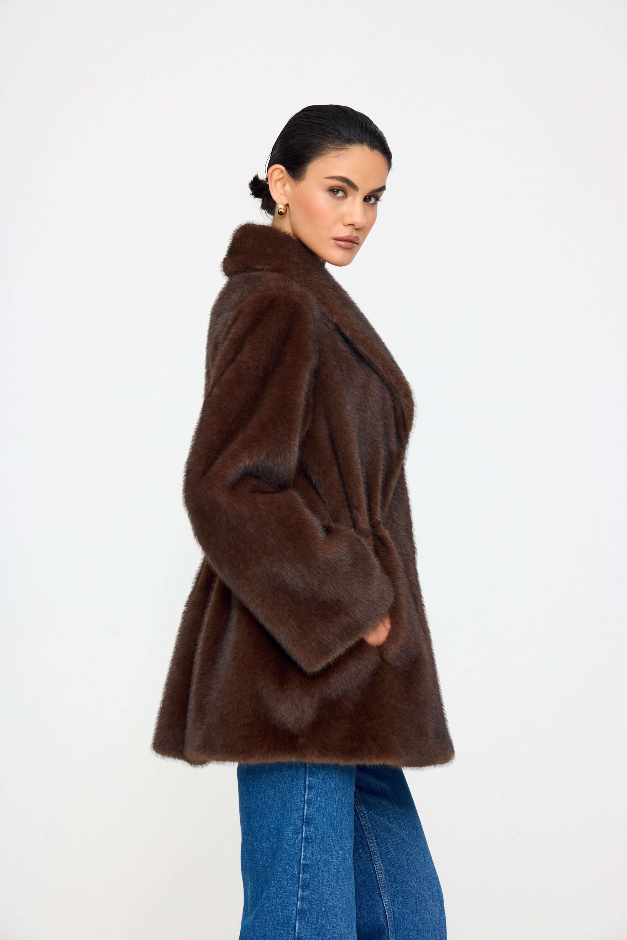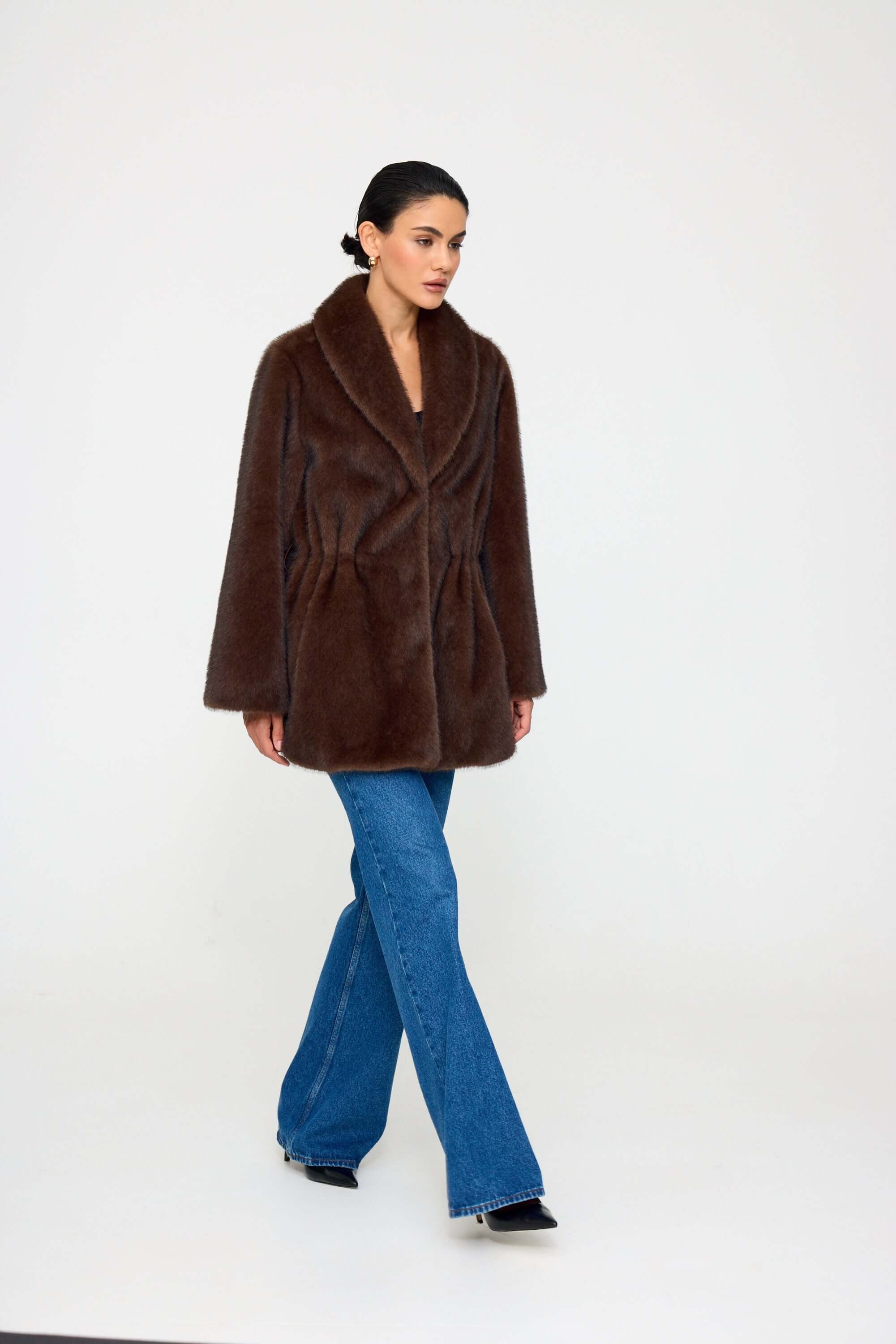 Eva is ultra-light transformer coat crafted from premium faux mink.