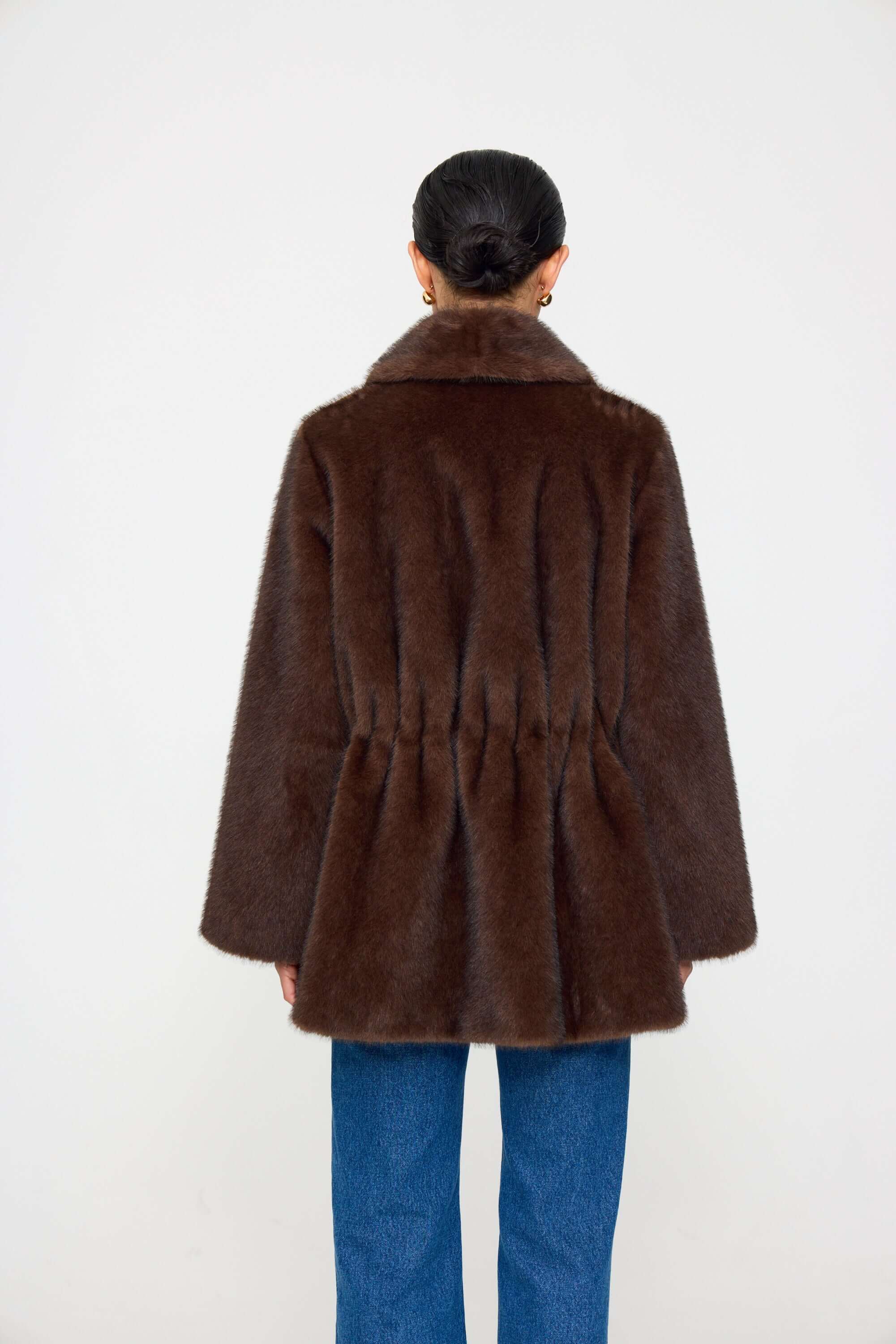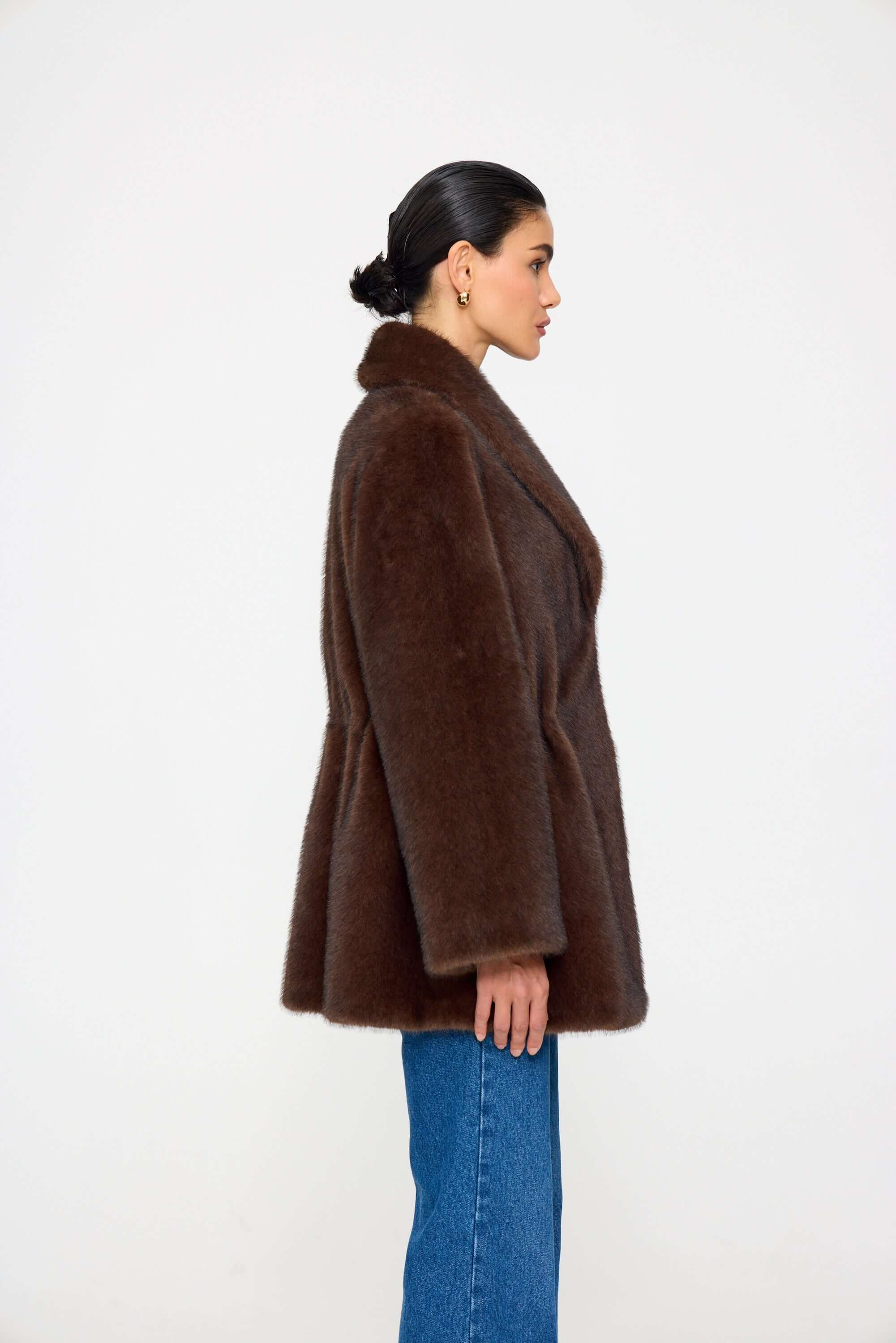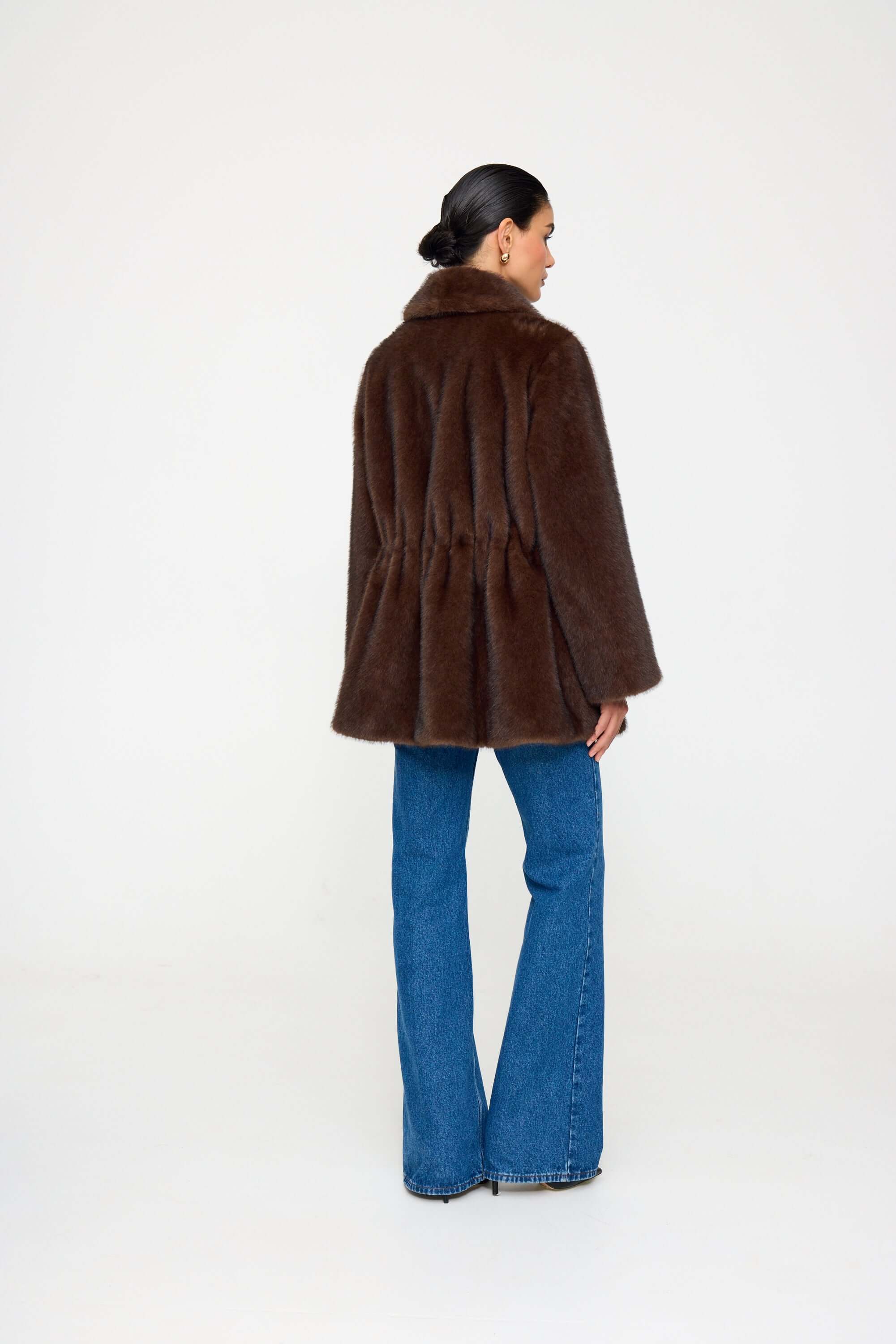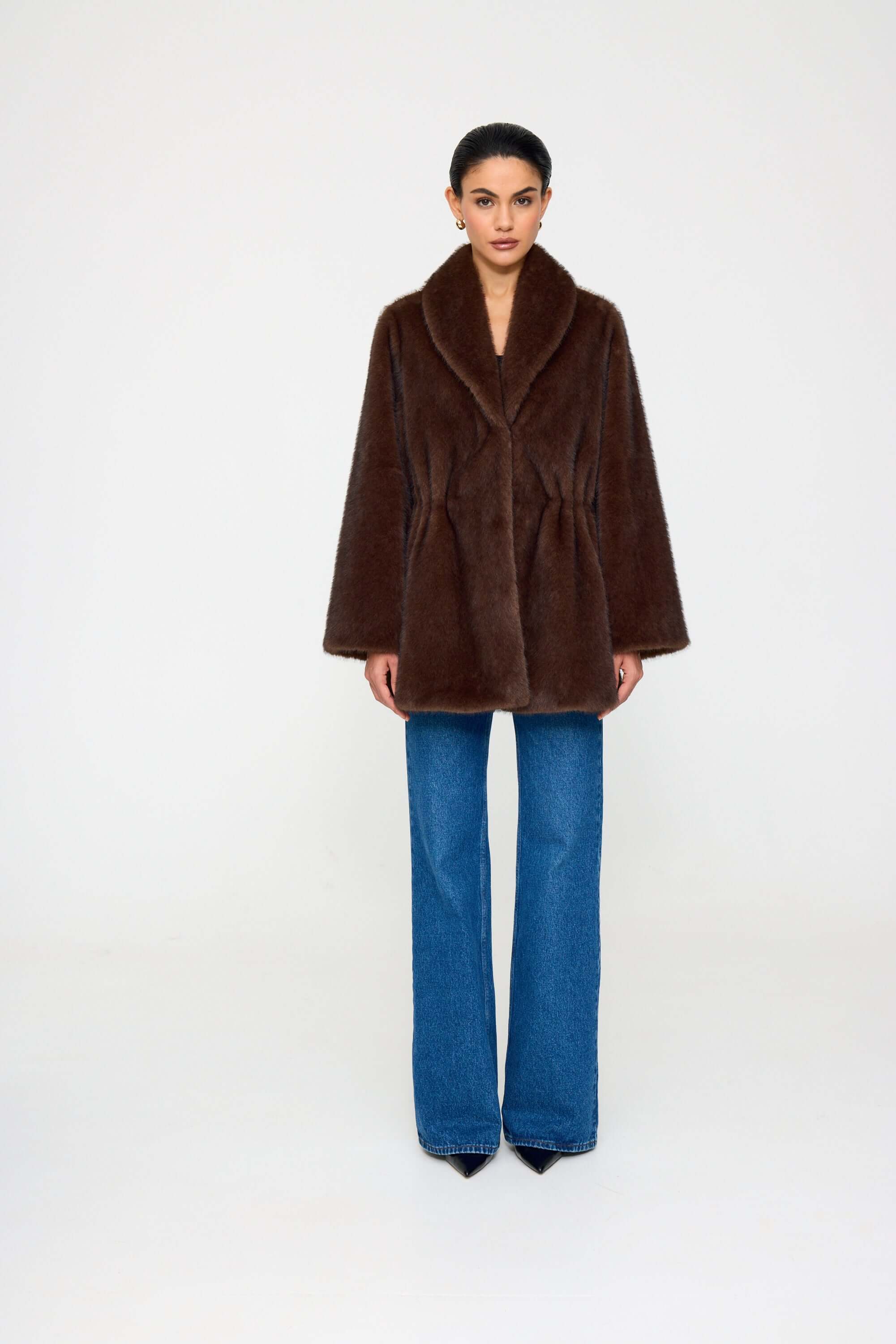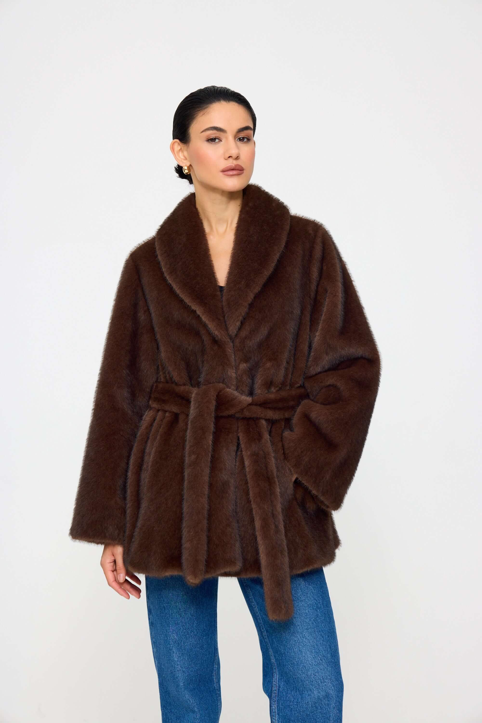 Eva is ultra-light transformer coat crafted from premium faux mink.
